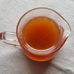 En una olla a fuego medio, calienta 60 ml de agua con 210 g de azúcar, remueve hasta disolver y no revuelvas más;